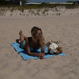 Our plush beach towels are made exclusively from premium Bamboo-Viscose and Aegean Turkish Combed Cotton (45/55 blend), with a two-ply twisted construction that ensures a soft touch and high absorbency. Bamboo fabric's natural odor-resistant and antibacterial properties make this a beach bag essential and a perfect complement to a sailing trip.